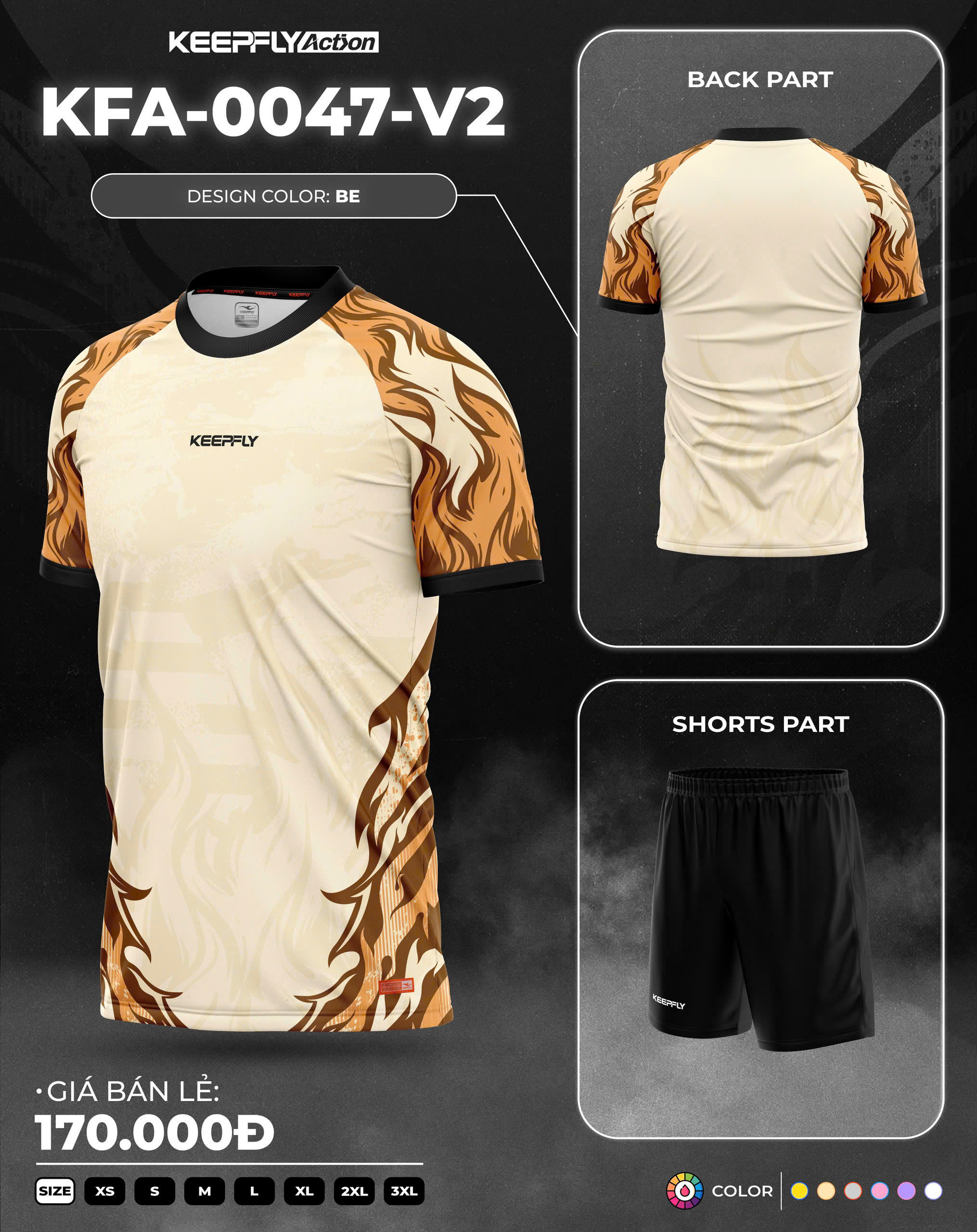 Áo bóng đá Keepfly là thương hiệu Việt Nam chất lượng cao (từ 2016), nổi bật với thiết kế hiện đại, chất vải độc quyền (như K-Light, K-SMO) co giãn 4 chiều, thoáng khí, chống tia UV và bền màu nhờ công nghệ in chuyển nhiệt. Sản phẩm có giá từ 150k - 200k, phù hợp đội nhóm, thường có chương trình khuyến mãi cực lớn như giảm 20% khi đặt đội và miễn phí ship