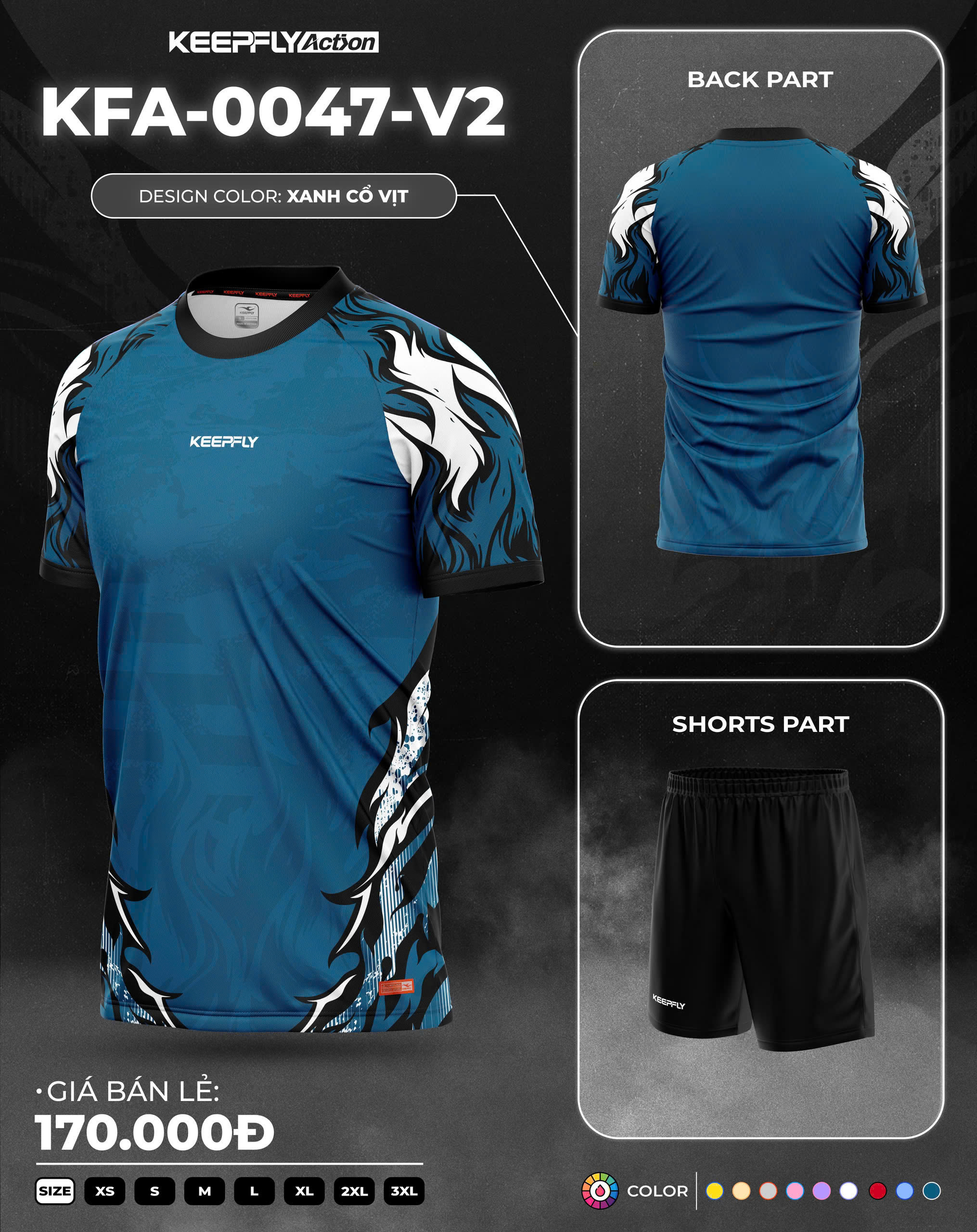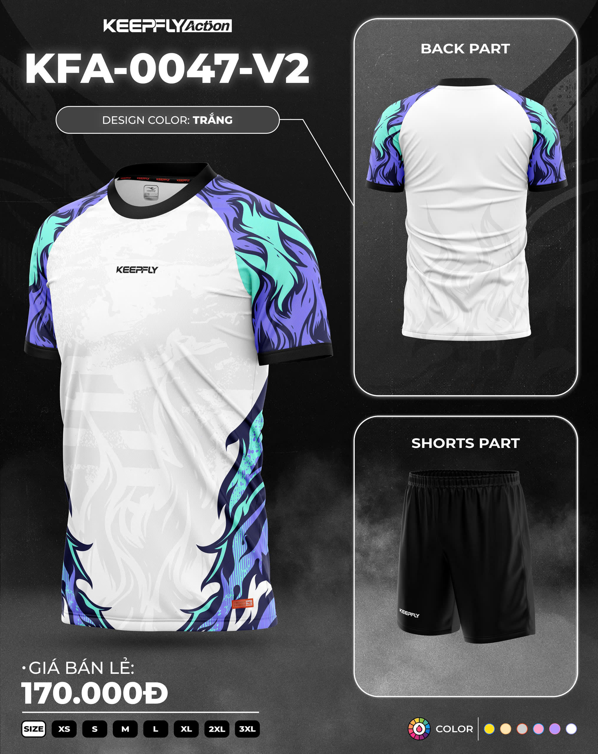 Áo bóng đá Keepfly là thương hiệu Việt Nam chất lượng cao (từ 2016), nổi bật với thiết kế hiện đại, chất vải độc quyền (như K-Light, K-SMO) co giãn 4 chiều, thoáng khí, chống tia UV và bền màu nhờ công nghệ in chuyển nhiệt. Sản phẩm có giá từ 150k - 200k, phù hợp đội nhóm, thường có chương trình khuyến mãi cực lớn như giảm 20% khi đặt đội và miễn phí ship